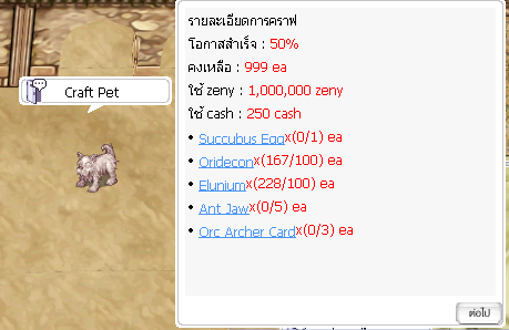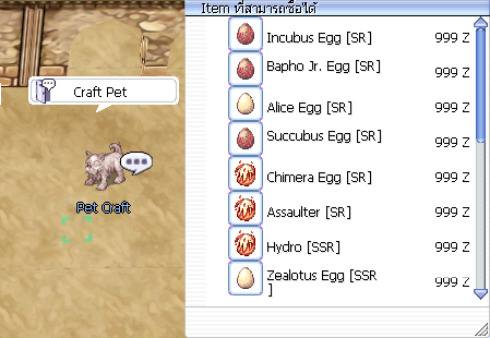 Card 1 ใบ จากมอน ตามแต่ชนิดที่กำหนด ดูได้จากตัว NPC
